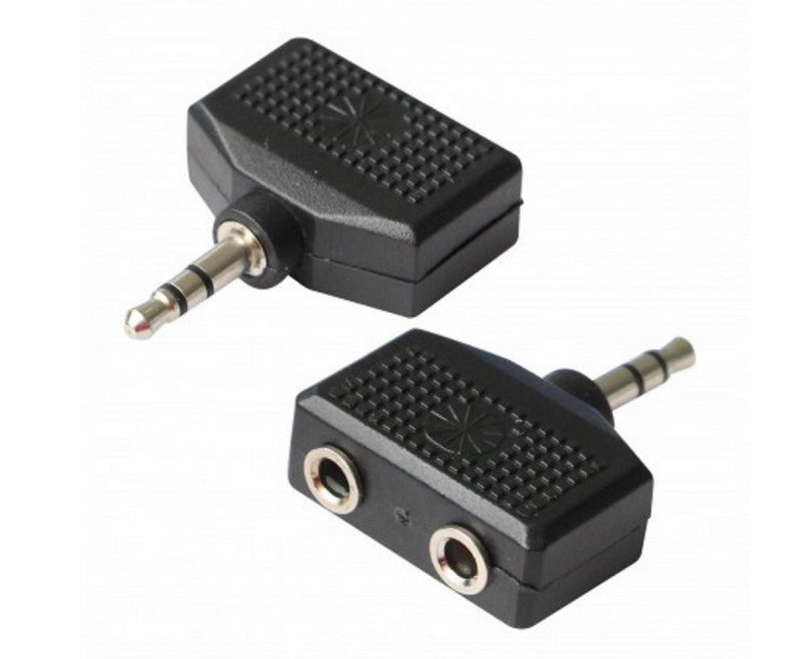 - Zum Anschluss von zwei Kopfhörern an einen Ausgang. Z.B. um zu zweit die gleiche Musik vom MP3-Player zu genießen. Kompaktadapter